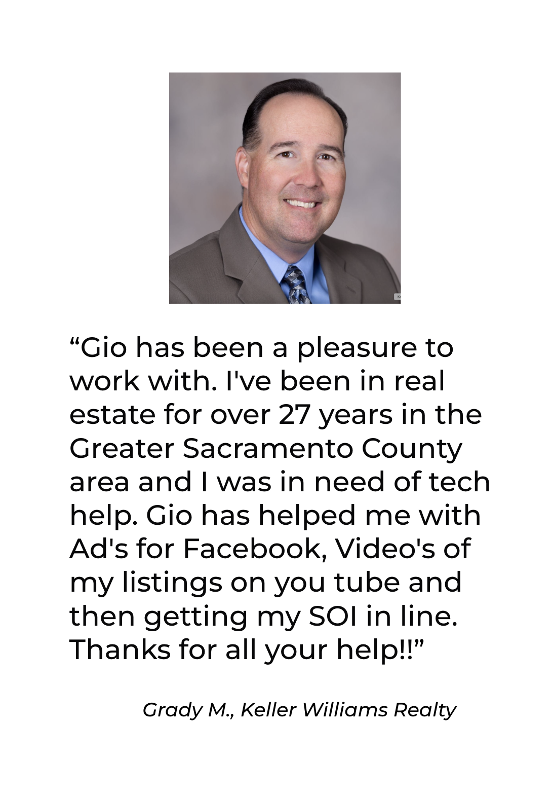 "Wanted to thank you (Gio) for the leads that we got over the Facebook and Instagram ads...The process works...Gio has been phenomenal....He's always been available when we had questions...and I'm very happy with Gio and his service."